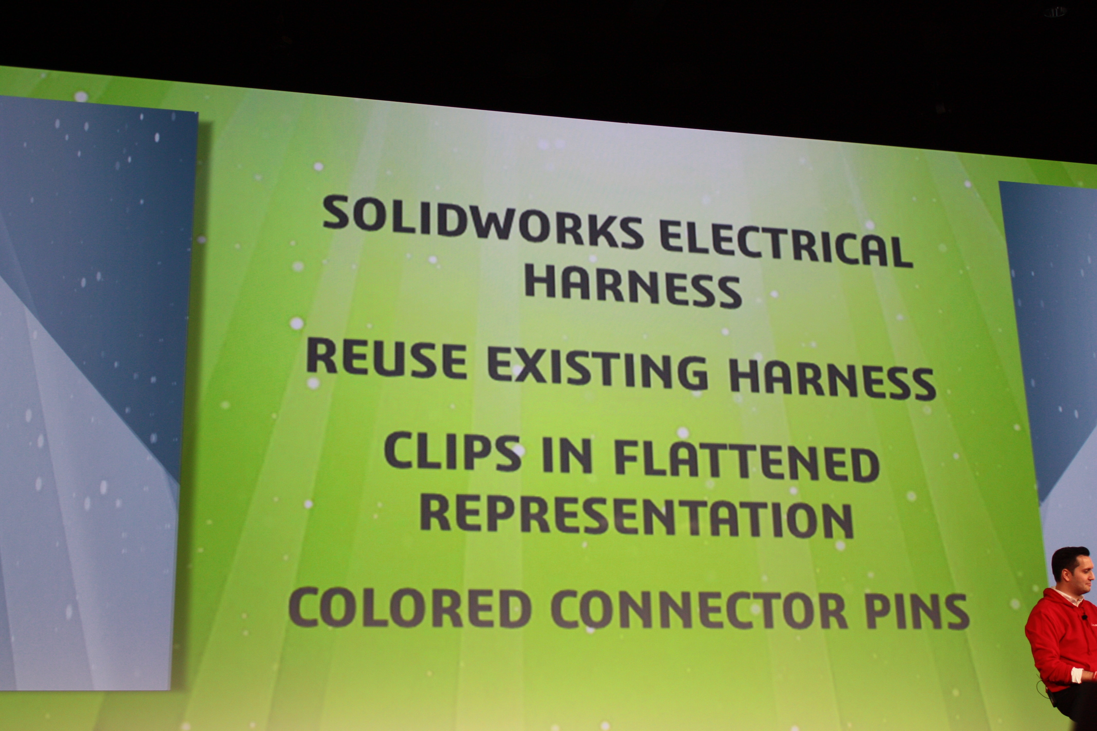 Die Vorstellung der (wahrscheinlichen) Highlights der Version 2014 war in diesem Jahr besonders gelungen. Jedes Jahr denken sich die SolidWorks-Mitarbeiter eine besondere Präsentation aus, in diesem Jahr mimte Product Marketing Manager Jeremy Regnerus einen Shoppingfernsehmoderator, der drei Designer mit ihren tollen Produkten präsentierte. Die neuen Features im Kurzdurchlauf: