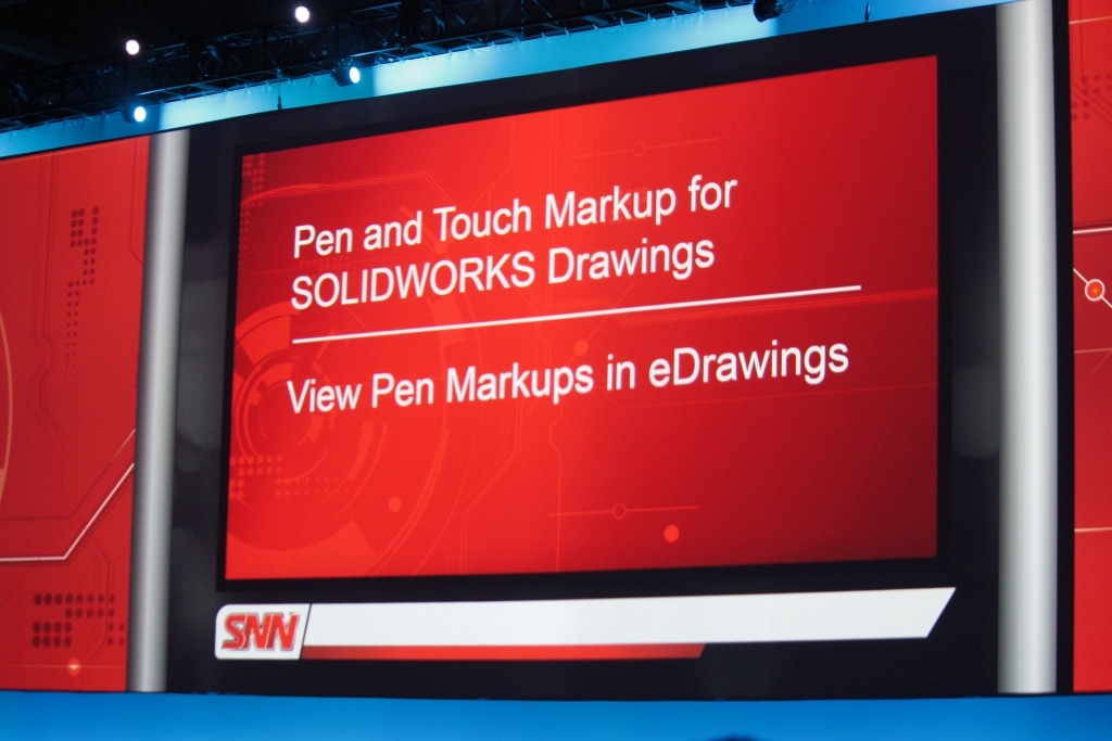 - New Markup Features: In SolidWorks lassen sich nun Anmerkungen in Zeichnungen und Modelle „hineinmalen“, das geht mit Stift, Touch oder Maus – was immer die Hardware unterstützt. Die Anmerkungen werden im Featurebaum gespeichert und lassen sich als PDF, Snapshot oder eDrawing exportierten und betrachten.