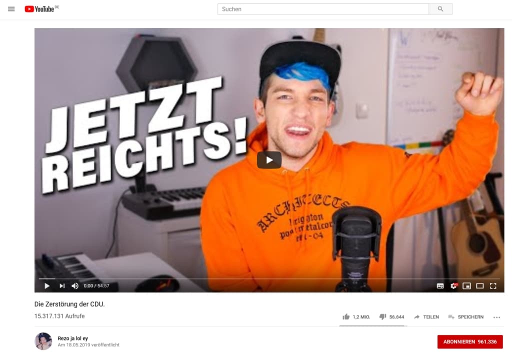 Ich hatte eigentlich gehofft, dass eine Partei mit einem solch großen Stab wie die CDU eine professionelle Truppe Social-Media-erfahrener Marketingleute hat. Diese hätten vermutlich (anders als Phillip Amthor) gewusst, dass der Begriff „Zerstörung“ im Youtube-Slang nicht die Auslöschung der CDU bedeutet, sondern eben, dass „, dass jemand argumentativ ziemlich plattgemacht wurde“, wie Rezo im Bento-Interview sagt. Im schlimmsten Fall hätte jemand seine 14-jährige Tochter oder seinen Sohn fragen können.
